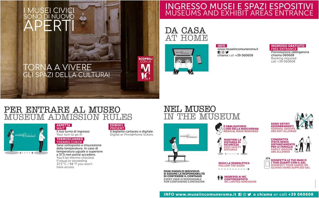 L’accesso ai musei gratuiti (Museo Bilotti, Museo Barracco, Museo Napoleonico, Museo Canonica, Museo della Repubblica romana, Casal de’ Pazzi, Museo delle Mura) è con prenotazione obbligatoria (gratuita) allo 060608 e visita accompagnata; è possibile prenotare a partire dal 29 maggio 2020