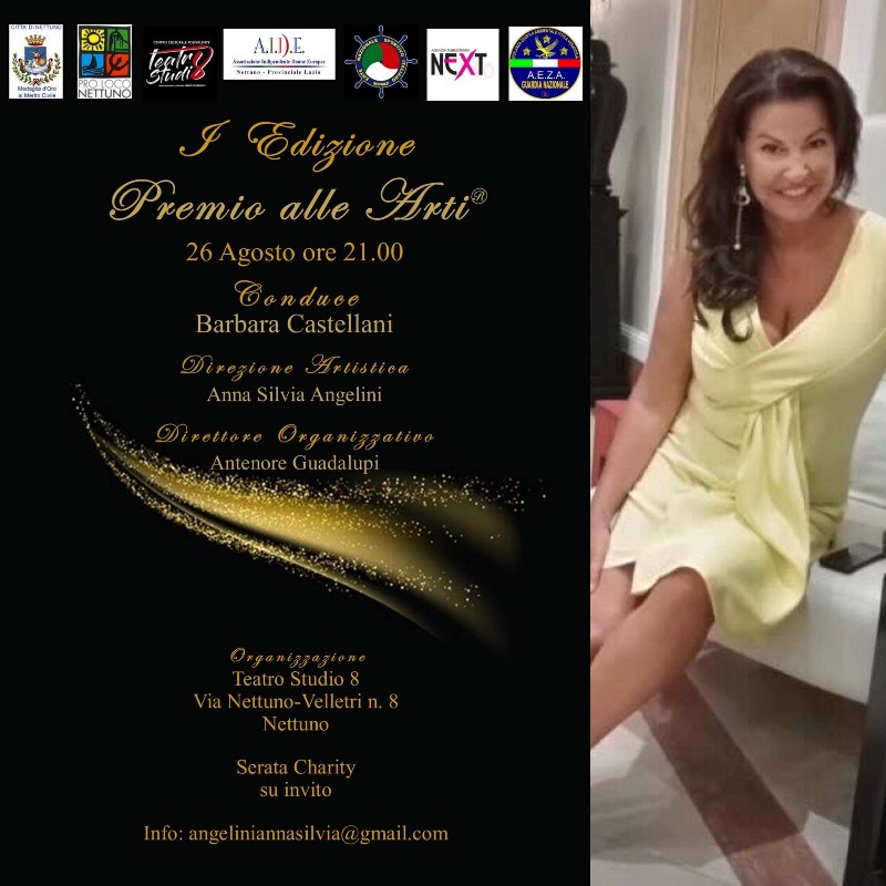 Una serata di Gala, dedicata all’arte, condotta dalla giornalista Barbara Castellani, con la direzione artistica di Anna Silvia Angelini, direttore organizzativo Antenore Guadalupi, in collaborazione con Guardia Nazionale A.E.Z.A (comando regione lazio), ente nazionale sportivo italiano sociale, Pro Loco Nettuno, organizzazione a cura di Francesco Ruggirello e Giampiero Bonomo, Teatro Studio 8, Liberi Teatranti.