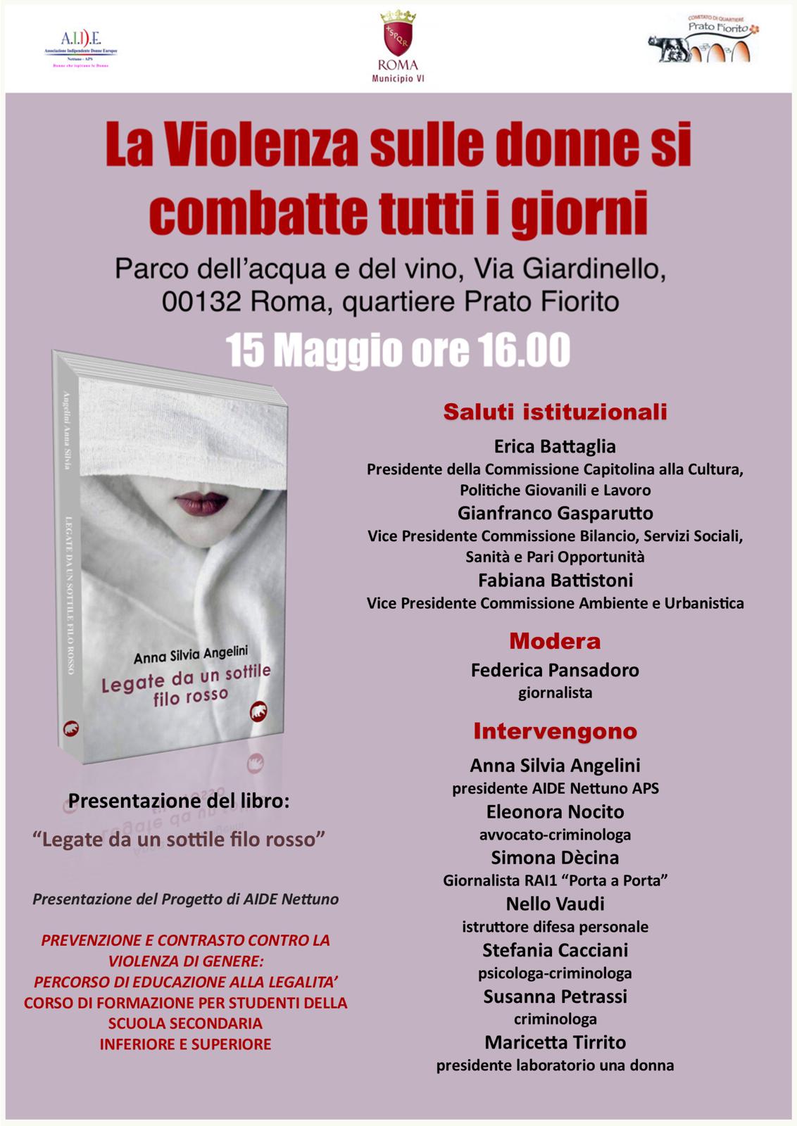 Con il PATROCINIO di Roma Capitale VI Municipio, A.I.D.E. Nettuno APS associazione indipendente donne europee, organizza in collaborazione con il Comitato di quartiere Prato Fiorito il convegno “LA VIOLENZA SULLE DONNE SI COMBATTE TUTTI I GIORNI” che si terrà il giorno 15 maggio 2022 alle ore 16.00 presso il Parco dell’acqua e del vino, via Giardinello, Roma, quartiere Prato Fiorito.