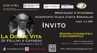 Dal 4 al 31 dicembre 2024, l’aeroporto Olbia-Costa Smeralda ospiterà la mostra artistico-documentale “La Dolce Vita di Federico Fellini e Leo Catozzo: tra sogno, magia e realtà“, organizzata dall’Associazione culturale Il Leone e le Cornucopie.