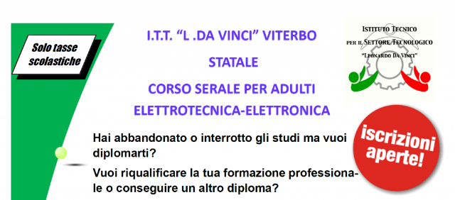 Per chi fosse interessato si può rivolgere all’ITT “Leonardo da Vinci “ Via Alessandro Volta, 26 tel 0761/309657 o VTTF010008@istruzione.it e richiedere un colloquio con i docenti.