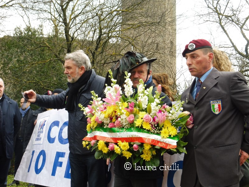 Il silenzioso corteo si ferma dove c’è il monumento dedicato ad uno dei martiri: Carlo Celestini, un infoibato, il simbolo delle vittime della nostra provincia, il primo ad essere stato riconosciuto.