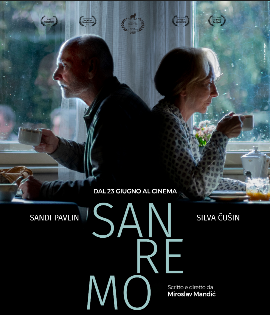 Sanremo, diretto da Miroslav Mandić e candidato per la Slovenia agli Oscar 2022, è un film d’autore romantico, poetico e riflessivo, che indaga sulla perdita di memoria, le emozioni istintive e lo stupore infantile dettato da una condizione di assopimento dalla realtà e dal passato, un mondo in cui l’età non conta in rapporto ai sentimenti e in cui il primo incontro con l’amore, nella sua casualità, innocenza ed impressione sensitiva, può ripetersi all’infinito. Protagonisti del film sono tre noti attori sloveni: Sandi Pavlin, nel ruolo di Bruno, Silva Čušin in quello di Duša e Boris Cavazza che interpreta Dare. Direttore della fotografia è Peter Zeitlinger.