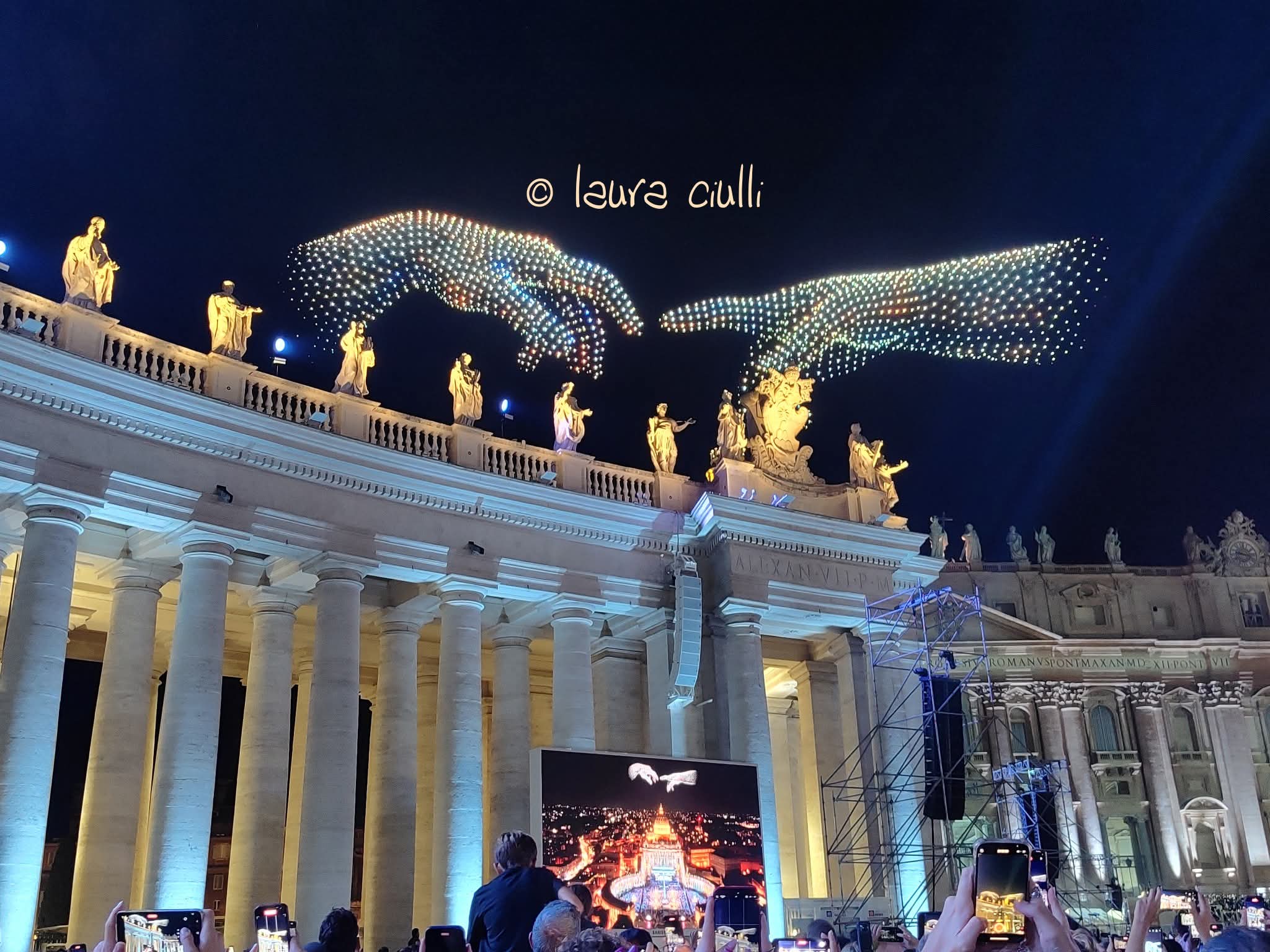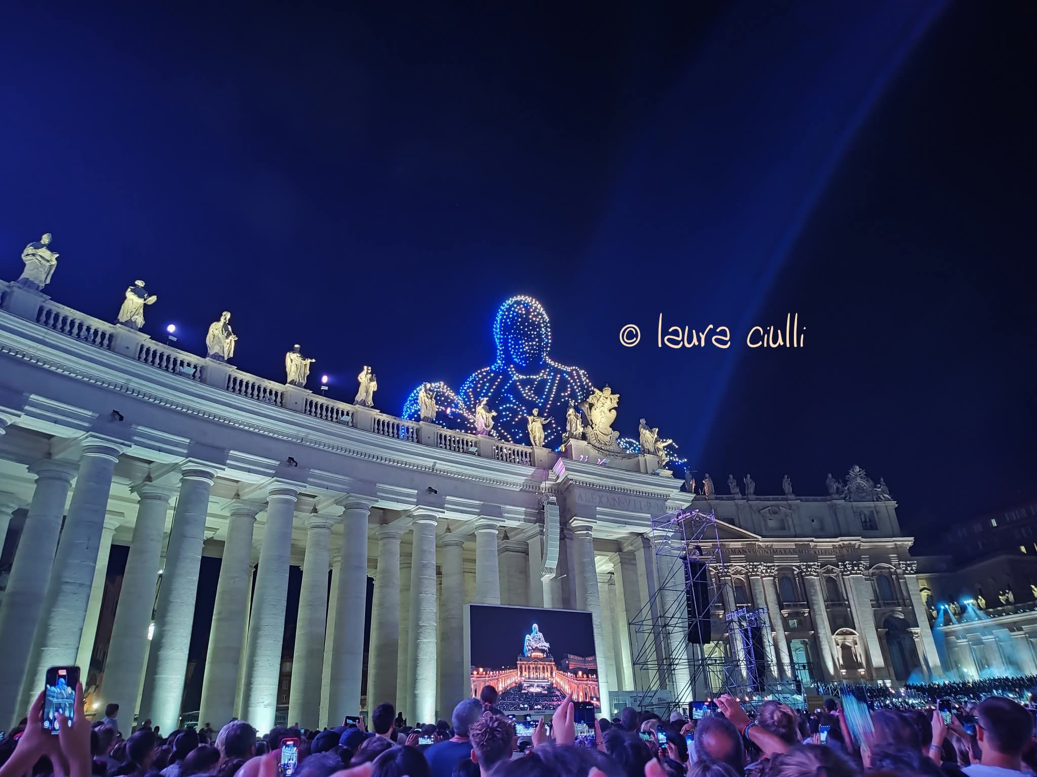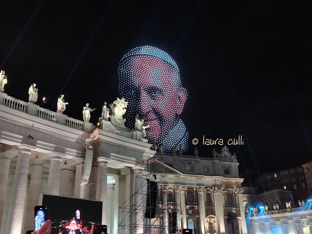 La Cupola michelangiolesca come sfondo e nel cielo 3000 droni disegnatori del volto di Papa Francesco, opera di Nova Sky Stories, sulle note dell’acclamato Andrea Bocelli, per ricordare l’autore della enciclica “Fratelli tutti”, ma anche la “Pietà “, la “Creazione di Adamo” di Michelangelo, con oltre oltre 80mila persone entusiaste, mentre nel mondo si sta diffondendo un clima di odio, che preoccupa ormai anche il nostro Paese.