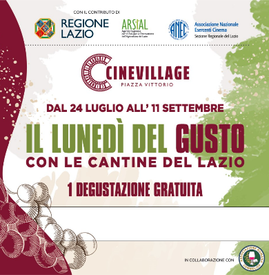 Il LUNEDI DEL GUSTO al CineVillage di piazza Vittorio dal 24 luglio all’11 settembre le degustazioni dei vini della Regione Lazio