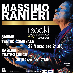 Aperta la prevendita per i due concerti di Massimo Ranieri in Sardegna. L’artista porterà il suo spettacolo Tutti i sogni ancora in volo il 29 marzo al Teatro Comunale di Sassari e il 30 marzo al Teatro Lirico di Cagliari. I biglietti sono disponibili sui circuiti Boxoffice e Ticketone.