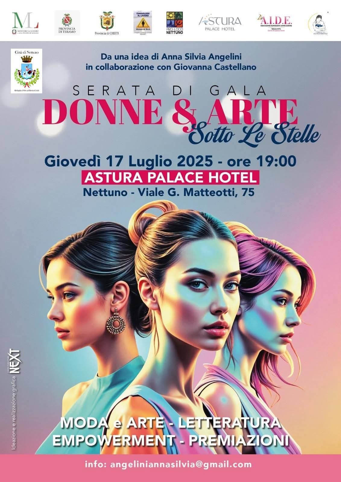 Il 17 luglio 2025, alle ore 19:00, l’Astura Palace Hotel di Nettuno si illuminerà per ospitare “Donne & Arte sotto le stelle”, una straordinaria serata di gala interamente dedicata all’empowerment femminile e alla cruciale lotta contro la violenza di genere.