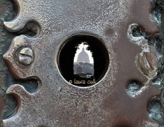Andare oltre la serratura: è possibile a Roma, addirittura con tanto di fila tra turisti e romani, per ammirare il “Cupolone” della Basilica di San Pietro, tra una galleria di alberi e di siepi che danno la sensazione di osservare il panorama, con un cannocchiale, dal portale decorato da Giovan Battista Piranesi nel 1765.
