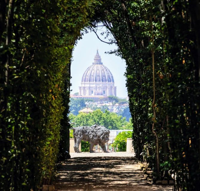 Da qualche giorno, più precisamente dallo scorso 28 giugno, questo posto è stato arricchito, se così si può dire, da un elemento particolare: un leone di Davide Rivalta, lo scultore bolognese che raffigura lupi, bufali, gorilla e leoni, posizionato nel giardino della Villa del Priorato di Malta, in modo tale da sembrare sotto la Cupola. È uno dei due leoni di bronzo esposti sotto il porticato del Cortile d’Onore del Quirinale, mentre si muove, una sorta di omaggio dell’Ordine di Malta, oltre che della Galleria Nazionale d’Arte Moderna e Contemporanea di Roma, a Papa Leone XIV .