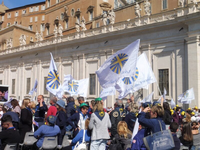 Una grande festa, un momento di preghiera intenso e gioioso in piazza san Pietro, che ha visto numerosissimi gruppi, iscritti dell’Azione Cattolica Italiana, ma anche studenti, docenti e personale dell’Università Cattolica del Sacro Cuore ed appartenenti all’Istituto Missionarie della Regalità di Cristo, proprio alla vigilia della 99esima Giornata per l’Università Cattolica ‘Per amore della conoscenza. Le sfide del nuovo umanesimo’ (23 aprile), creata dalla beata Barelli con Padre Agostino Gemelli, quasi 100 anni fa.