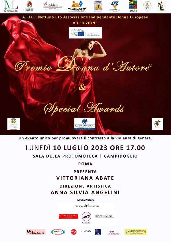 La Donna è il soggetto della celebrazione del Premio Donna D’Autore & Special Awards 2023 che si terrà lunedì 10 luglio alle ore 17.00, presso la meravigliosa sala della Protomoteca in Campidoglio-Roma. Donne, e da quest’edizione anche uomini, eccellenti in contrapposizione alla negatività della cronaca criminale quotidiana. Una kermesse straordinaria e unica per promuovere il contrasto alla violenza di genere, offrendo un messaggio di speranza e incoraggiamento: dalla violenza, qualsiasi essa sia, si può uscire.