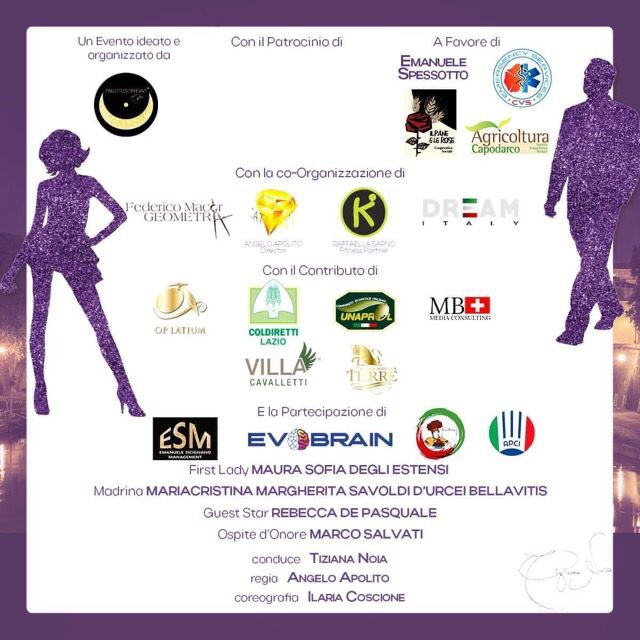Collaborano: Zanutta S.p.a. – Evobrain – Coldiretti Lazio – Unaprol – Op Latium – MB Media Consulting – Villa Cavalletti – Tierre Azienda Agricola – Alessandra Ferrari Bridal – Refit Italy – Maison Manuele Canu – Jariel Gabriele Bonomo – Trama Sartoria Napoletana – Stefano De Caro Couture – Pellicceria Iacullo – Giuseppe Mattucci – Mikini – Valeria Amoruso – Fadia Nouri – Piccoli Particolari – Frediano Properzi Orafo – Anna Cri Collection – Azzano Calze – Fassi Sport – Sergio Tirletti LookMaker – Francesco Garenna – Brigy Crispino MUA – Elenya Grafica Viziata – Emanuele Sicignano Management – P31 Beverage Emotion – Scuola alberghiera Maffeo Pantaleoni – IBT Viaggi Oderzo – Vision Group – Polo Immobiliare Grado.