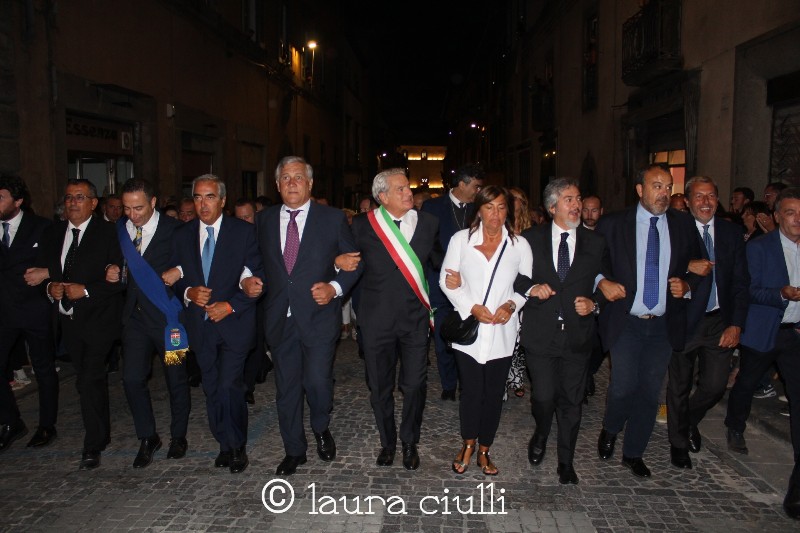 Dopo, ricevono in piazza, il confetto e successivamente tutti inchinati dinanzi alla Macchina per la benedizione. Seguirà il saluto del sindaco di Viterbo, Giovanni Maria Arena, del costruttore Vincenzo Fiorillo.