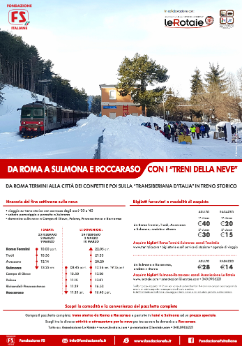 Ogni fine settimana, infatti, si può partire sul Treno della Neve da Roma Termini alle 10:00, il percorso affascinante è quello della “Transiberiana d’Italia“.